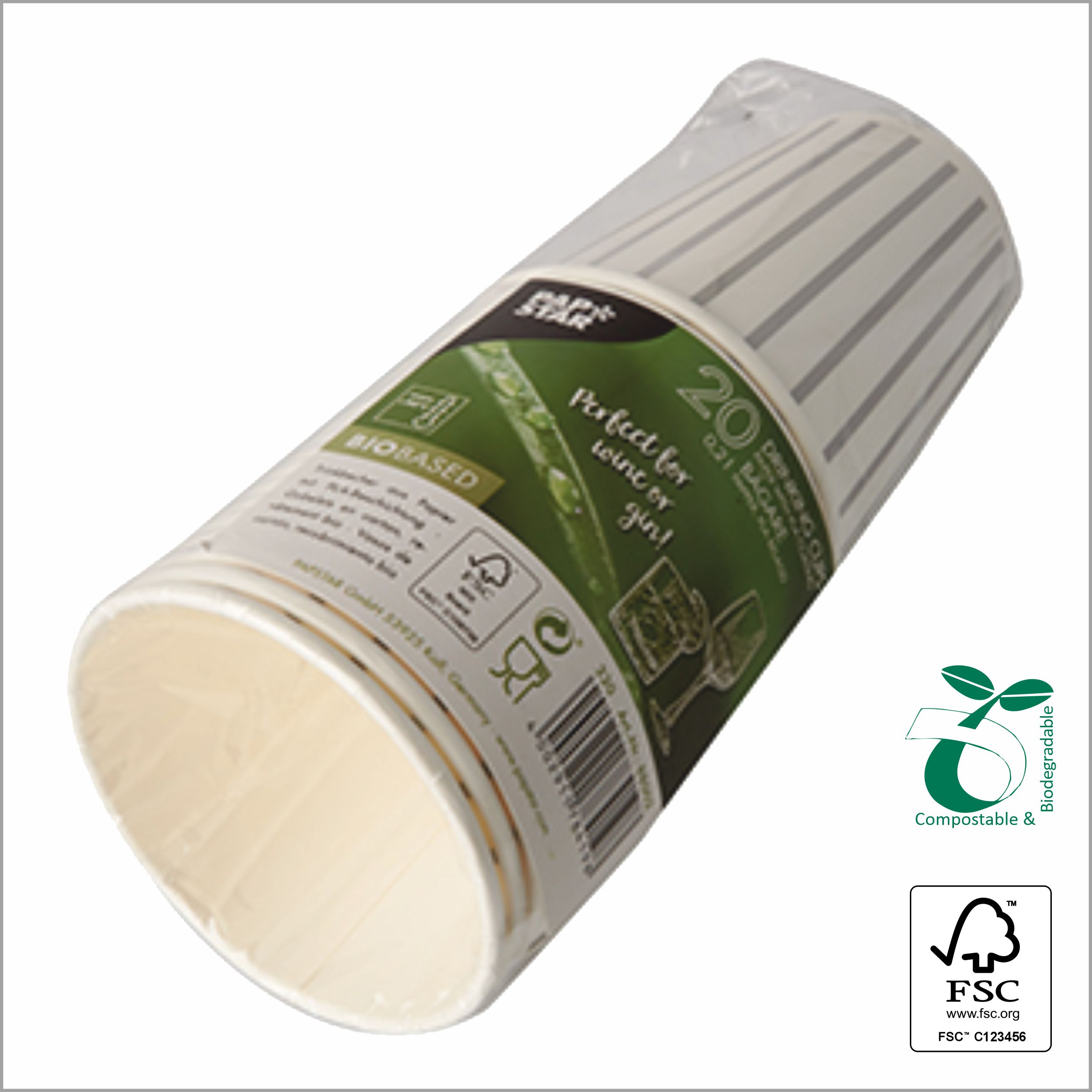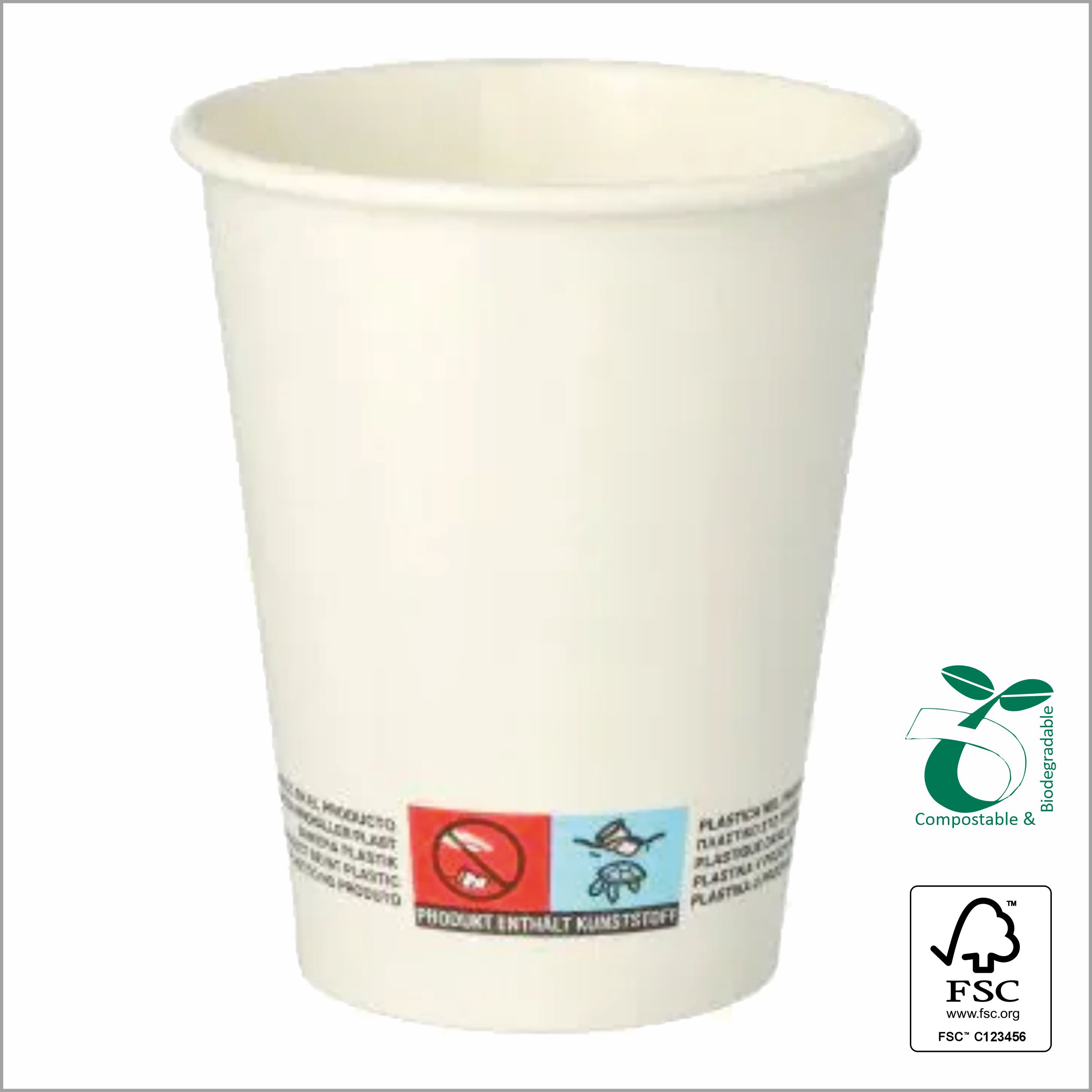 Bio Pappersmugg 300 ml 8×11,7 cm (Ø x höjd) 300 g/m² vit obestruket kartong, FSC®, 1000 st/låda // matchande lock 85220, 88010, 87934, 88427